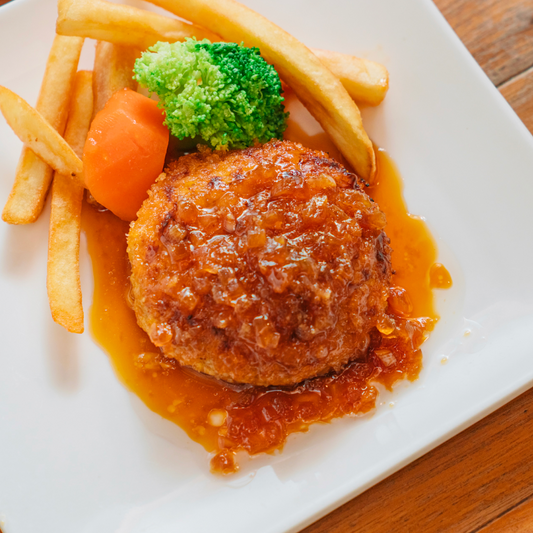 九州の甘口ソースは、かつて長崎のシュガーロードを通じて伝わった砂糖文化の名残りと言われています。果実や野菜の甘みを活かし、ハンバーグの旨味を引き立てます。